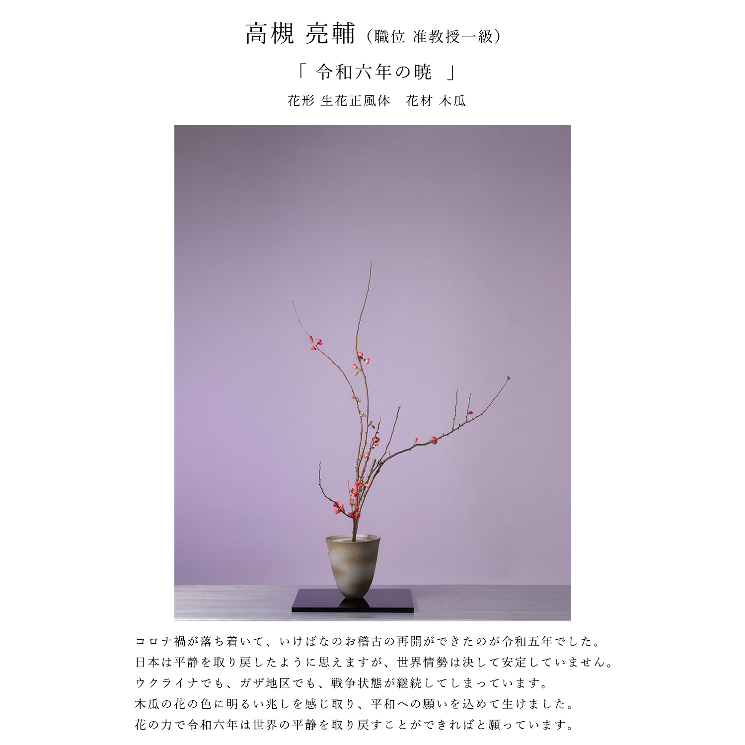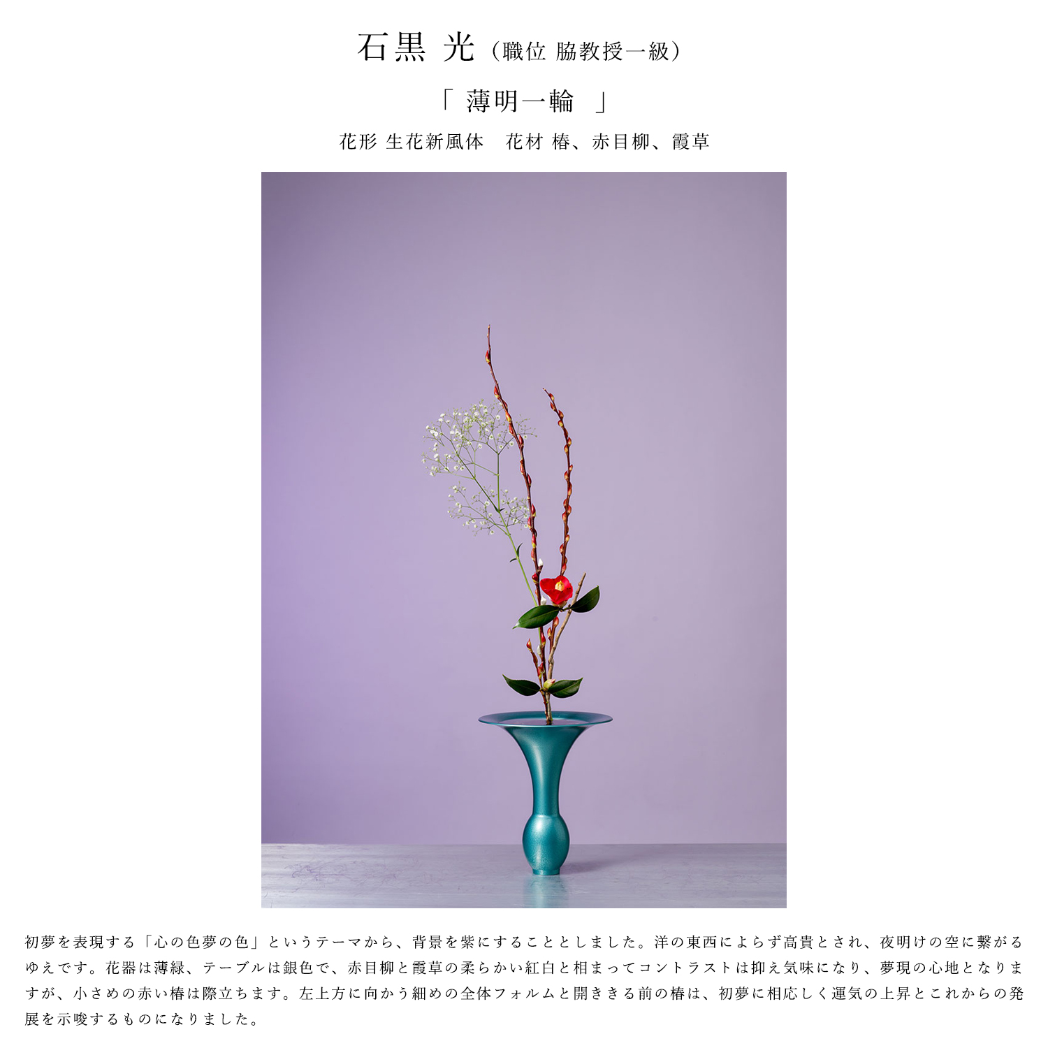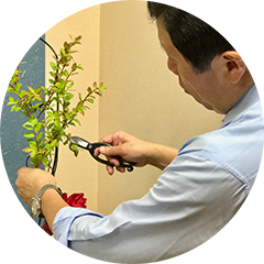 今後は「一家に一輪」の花を広める運動をしたいと思っております。またこれから益々、華道を邁進して参ります。頑張らせていただく所存でございますので、よろしくご指導ご鞭撻ください。