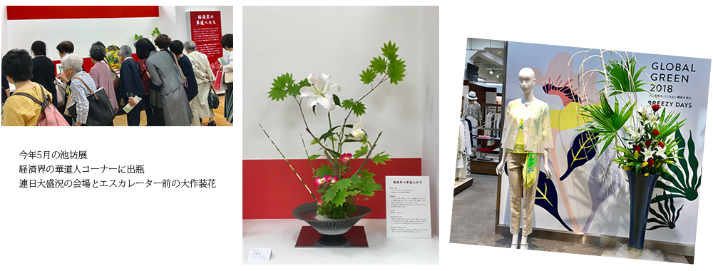 このようなご縁から昨年より、毎年5月に開催されます日本橋三越本店での「池坊展」の特別コーナーとして設えられた「経済界の華道人」コーナーにも二年連続してご参加くださいました。人数は少なくても日本の経済界で活躍される女性経営者、美容界のカリスマとしていけばな作品を展示されたわけですが、ご感想はいかがでしたか。